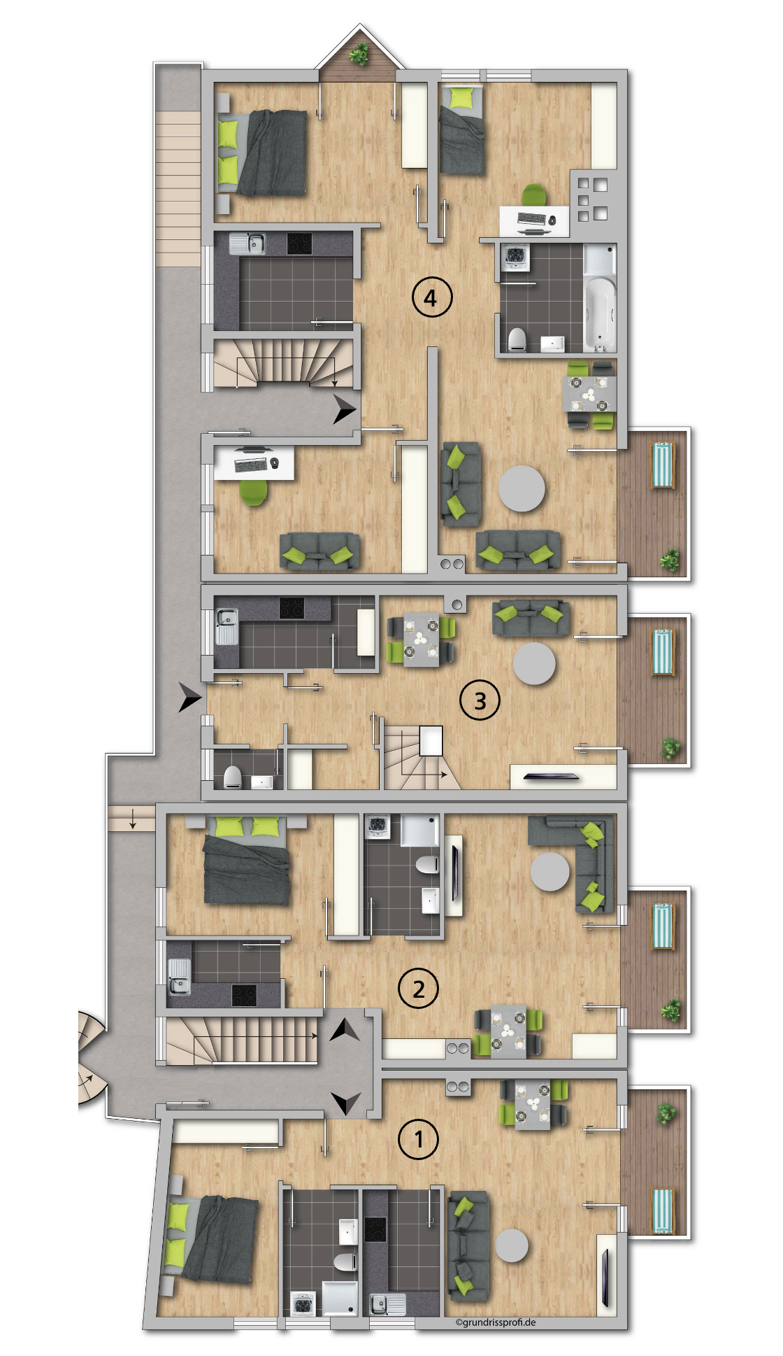 + Ölzentralheizung mit Stahlheizkessel für den kompletten Komplex