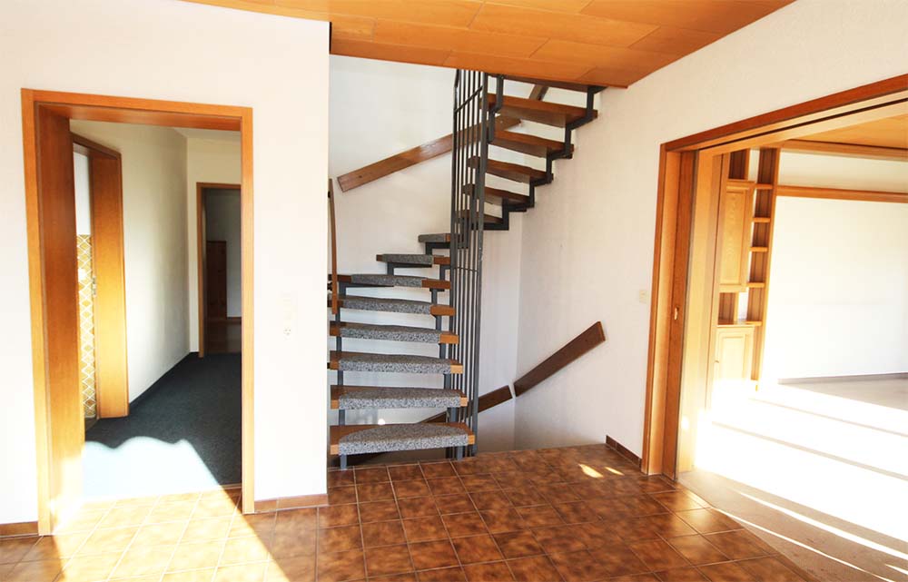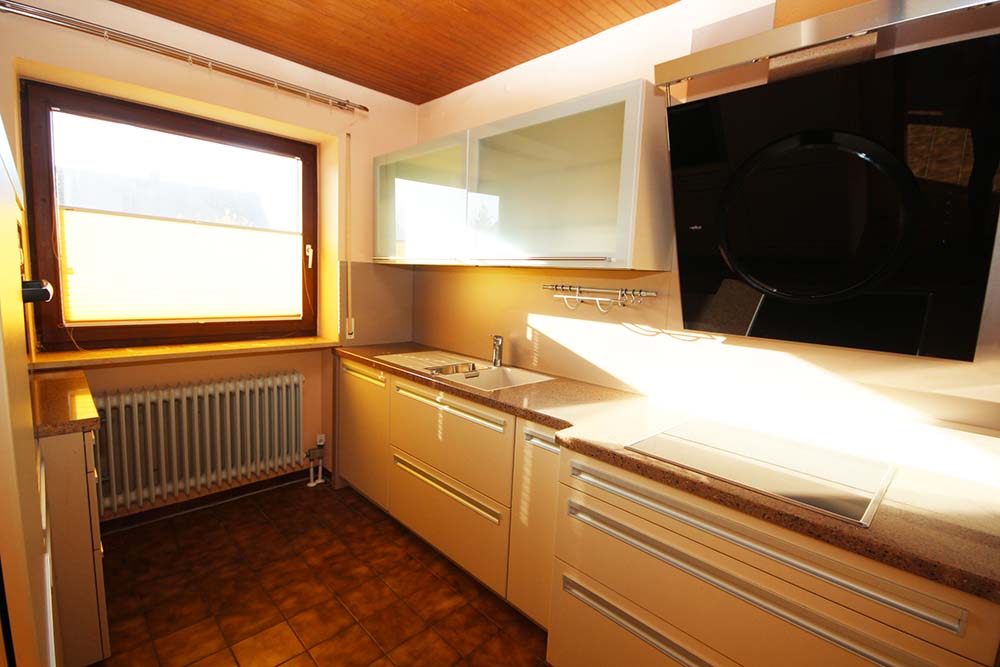 Das Wohnhaus selbst ist im Erdgeschoss so konzipiert, dass auch ein Wohnen und Leben auf einer Etage möglich ist. Der lichtdurchflutete Wohnraum mit kurzen Wegen zur zentralen Essdiele ist großzügig geschnitten und bietet genauso wie die Essdiele Zugang zur sonnenverwöhnten Südterrasse. Die Küche liegt separat und ist bereits mit einer wertigen Einbauküche ausgestattet.