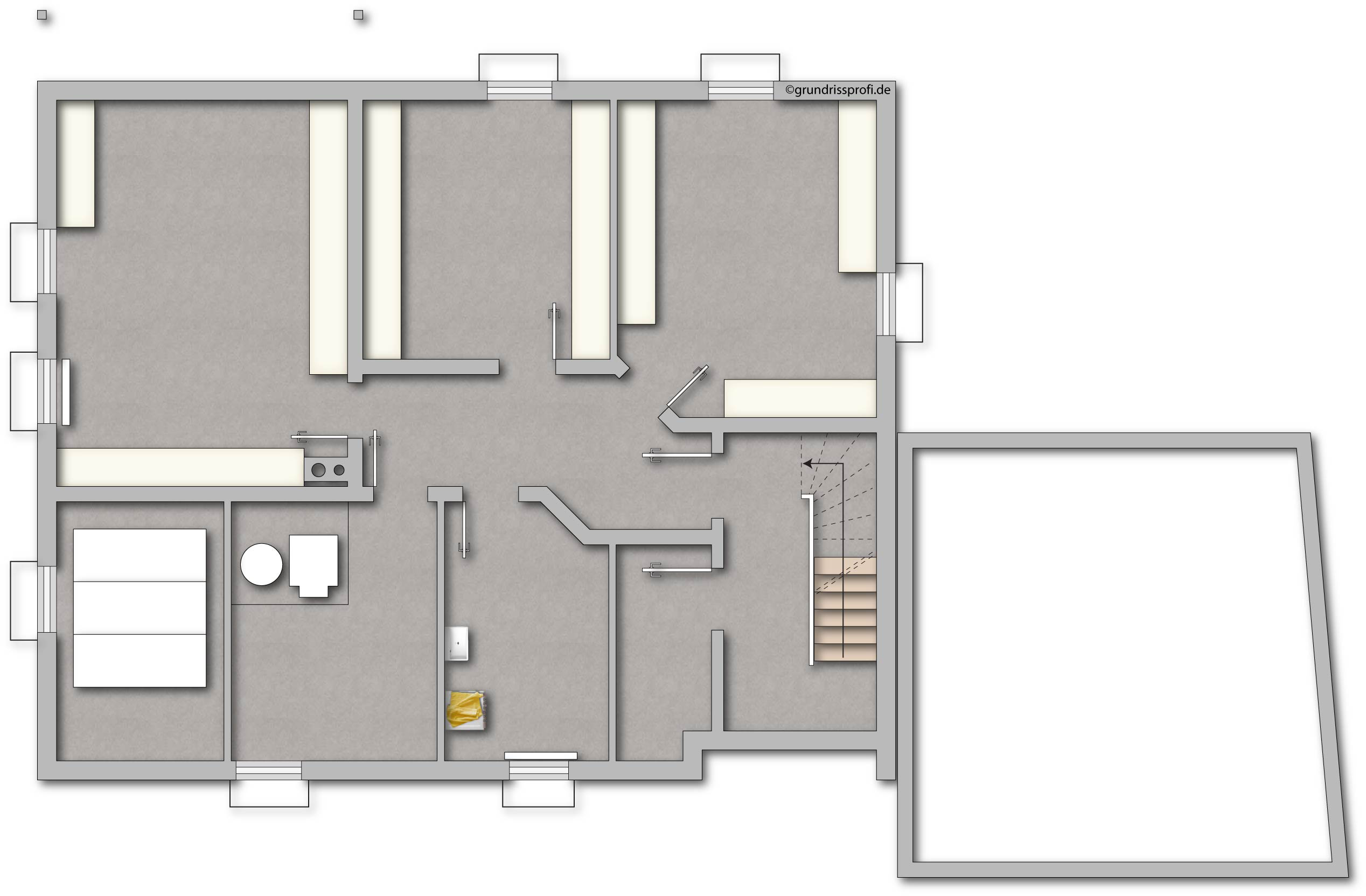 Außerhalb der Wohnung grenzt ein zusätzliches Zimmer an, welches momentan dem Erdgeschoss zugewiesen ist.