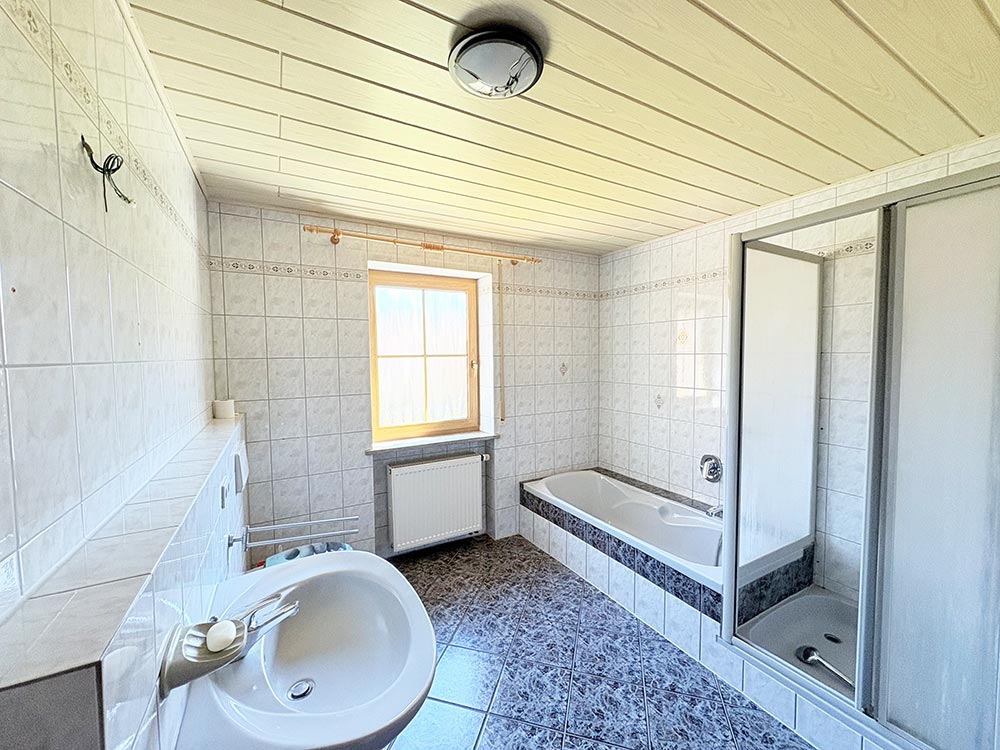 Zwei Schlafräume sowie ein großes Familienbad und eine Abstellmöglichkeit ergänzen das Erdgeschoss mit gut strukturierten Zimmern für die jeweilige Nutzung.