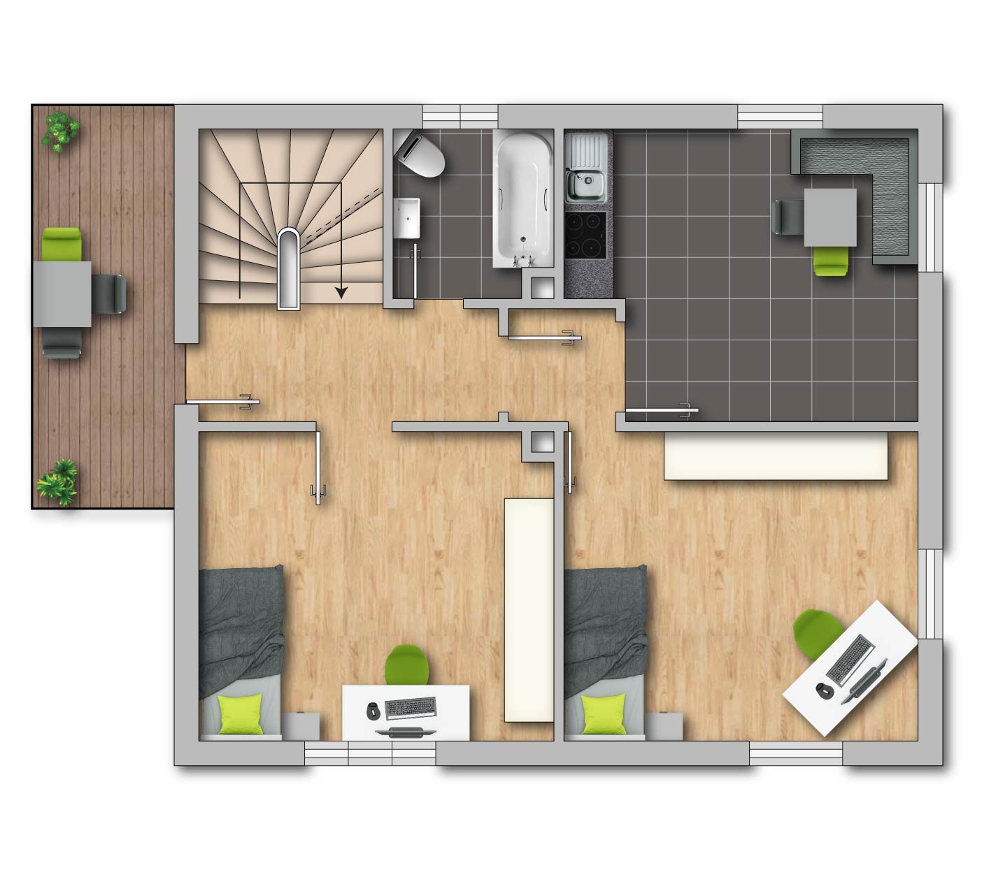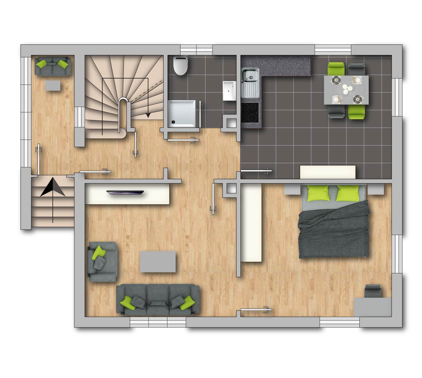 Je nach Nutzung sind hier vier bis fünf Wohn- und Schlafräume möglich und bestens für eine Familie geplant.