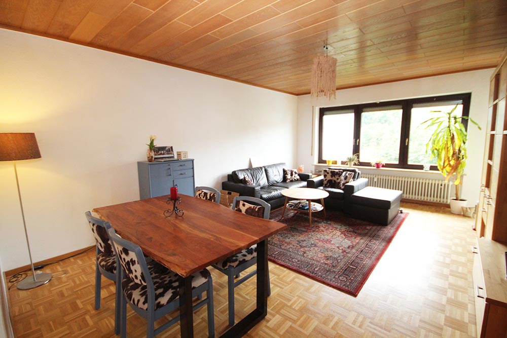 Das Wohnhaus selbst ist im Stil der 70er Jahre, jedoch äußerst gepflegt und instand gehalten. Die Wohnung befindet sich im 1. Obergeschoss.